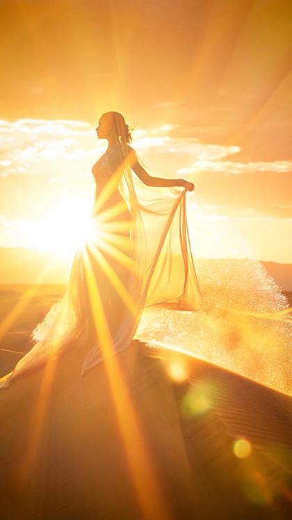 01. 광활한 사막과 황금빛 태양 속에서 모델등장