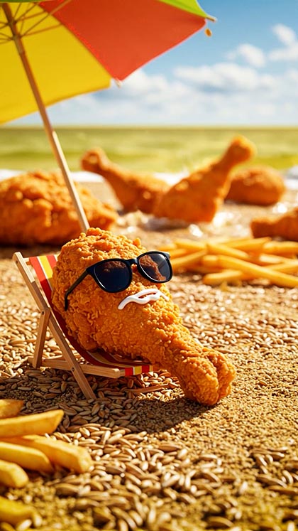 03. 통곡물 해변에서 선텐을 즐기는 치킨
